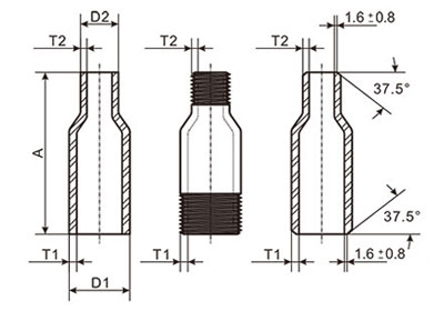 | (2) Wall Thickness:T1 & T2 in accordance with ASME B36.10M | |||||||||||